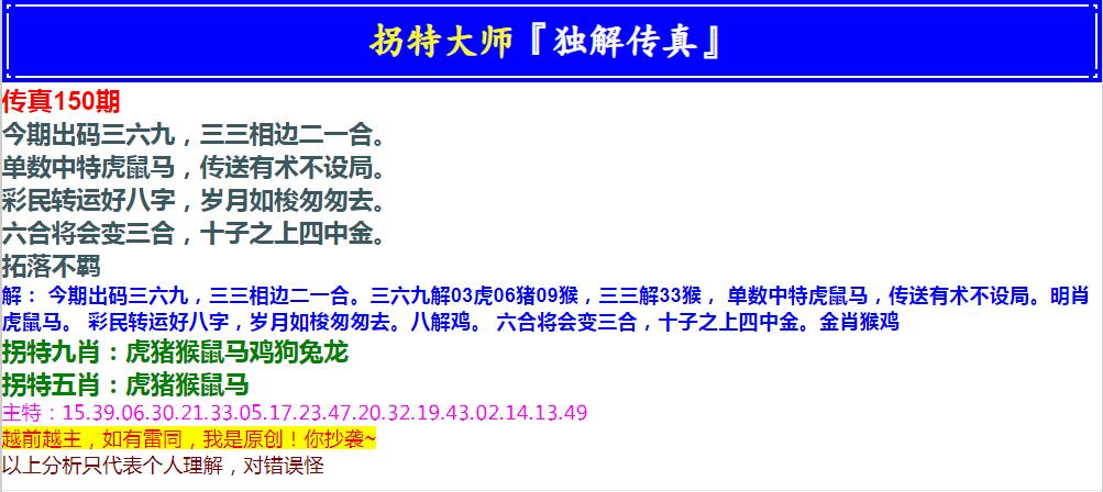 150期拐特大师澳门传真[图]