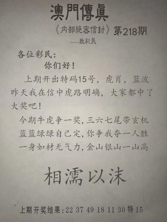 218期另版澳门传真[图]