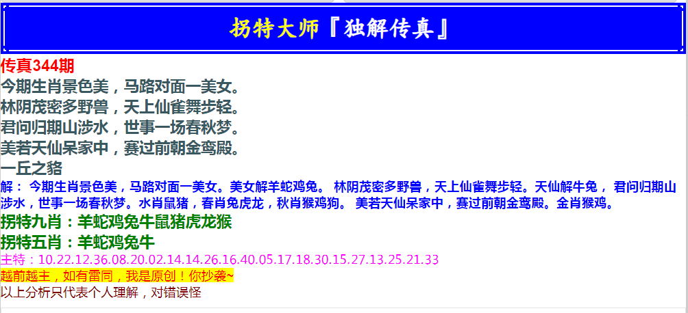 344期拐特大师澳门传真[图]