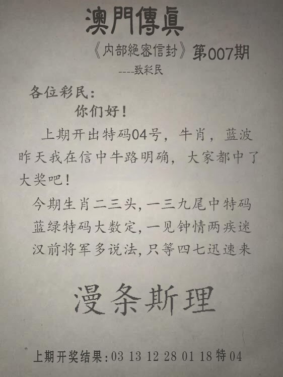 007期另版澳门传真[图]