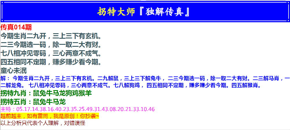014期拐特大师澳门传真[图]
