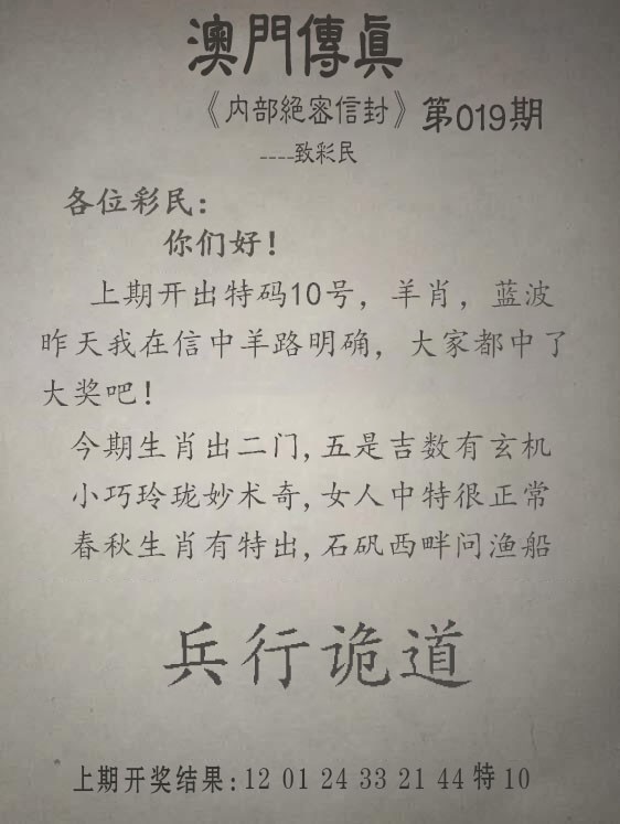 019期另版澳门传真[图]