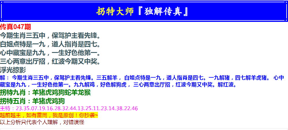 047期拐特大师澳门传真[图]