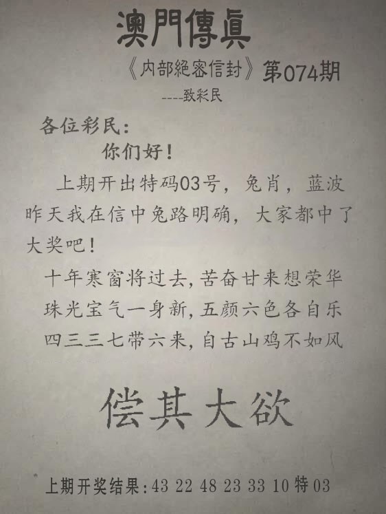 074期另版澳门传真[图]