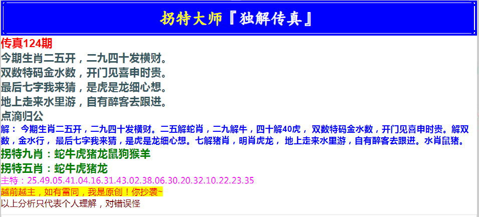 124期拐特大师澳门传真[图]