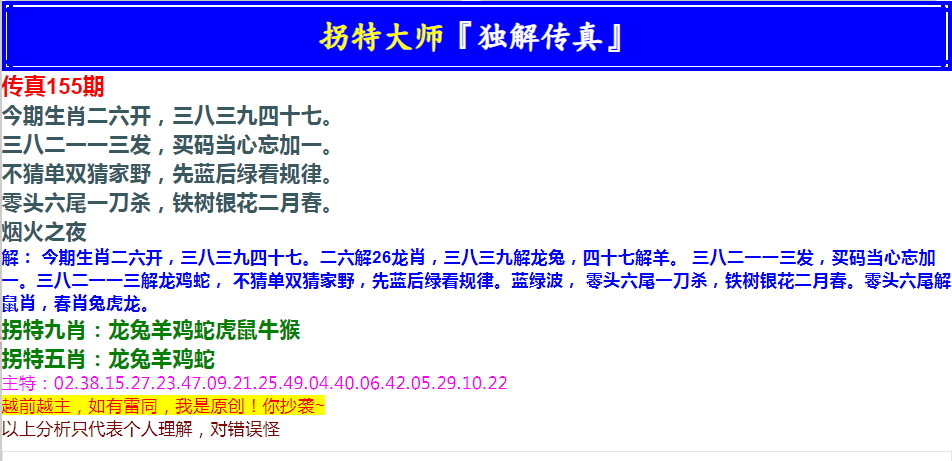 155期拐特大师澳门传真[图]