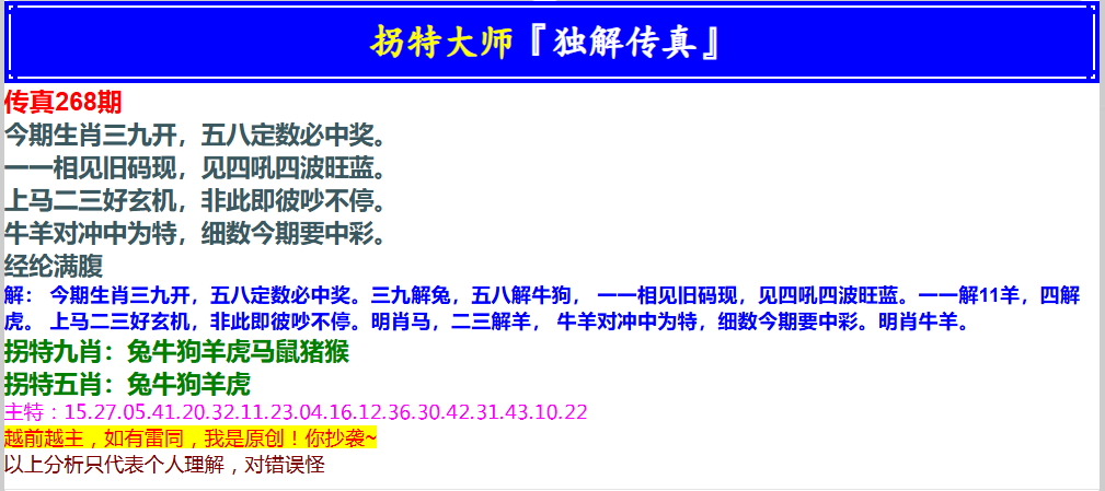 268期拐特大师澳门传真[图]