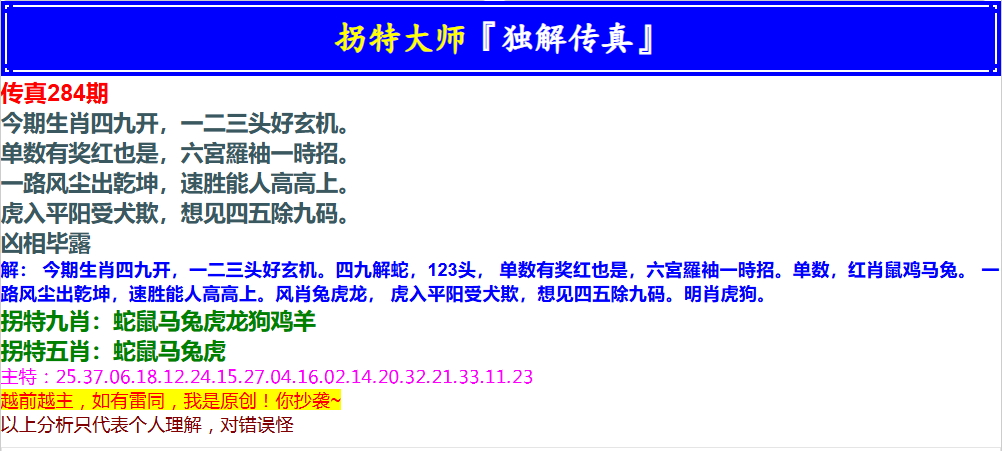 284期拐特大师澳门传真[图]