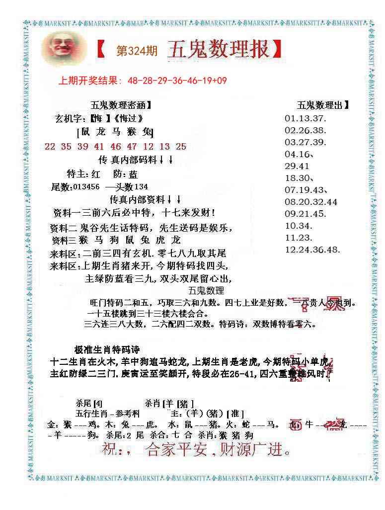 324期五鬼数理报[图]