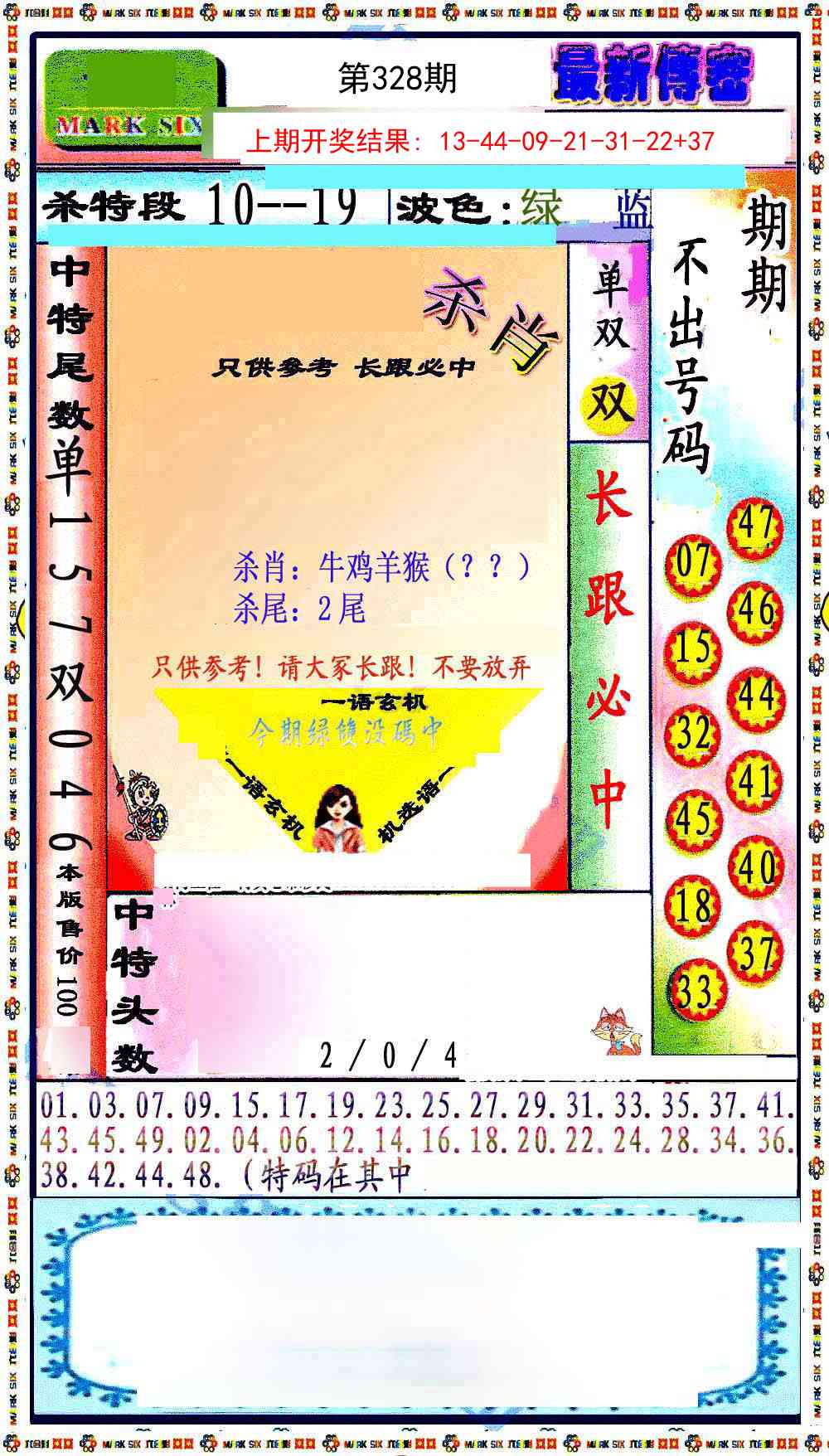328期最新传密绝杀6肖[图]