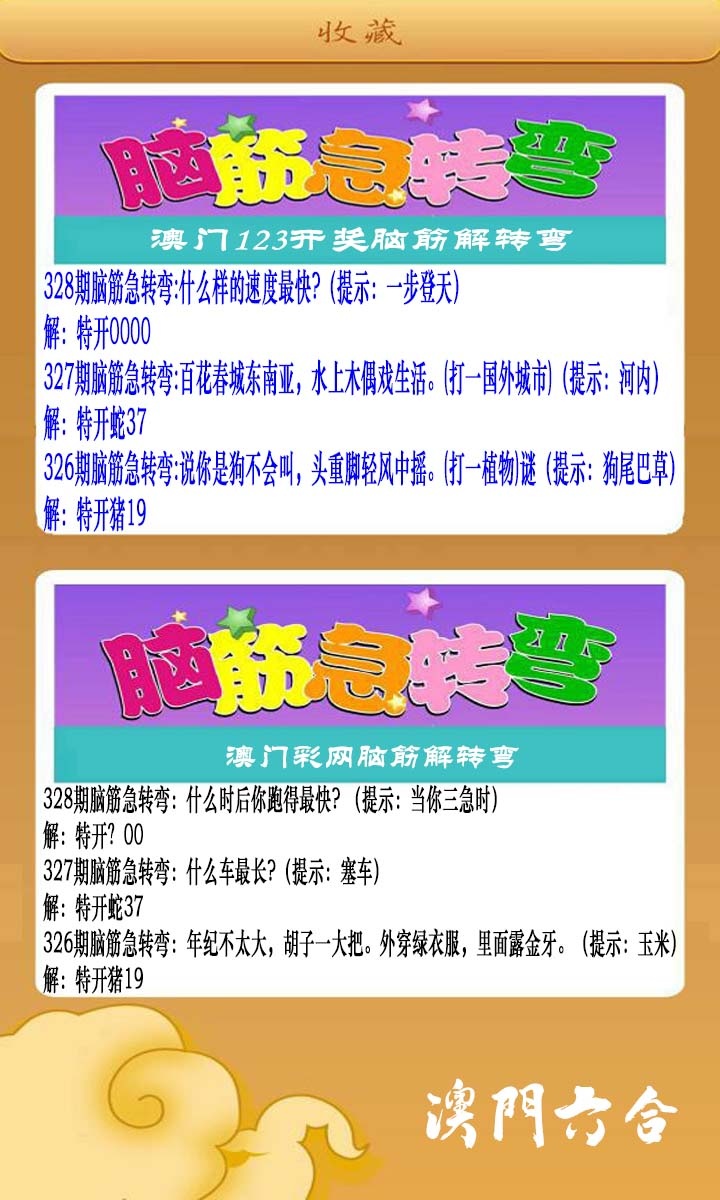 328期澳门脑筋急转弯[图]