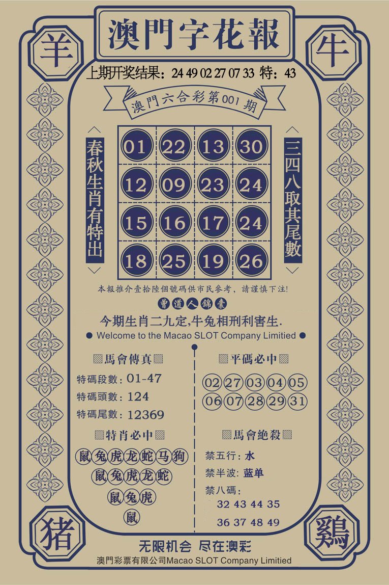 001期澳门字花报[图]