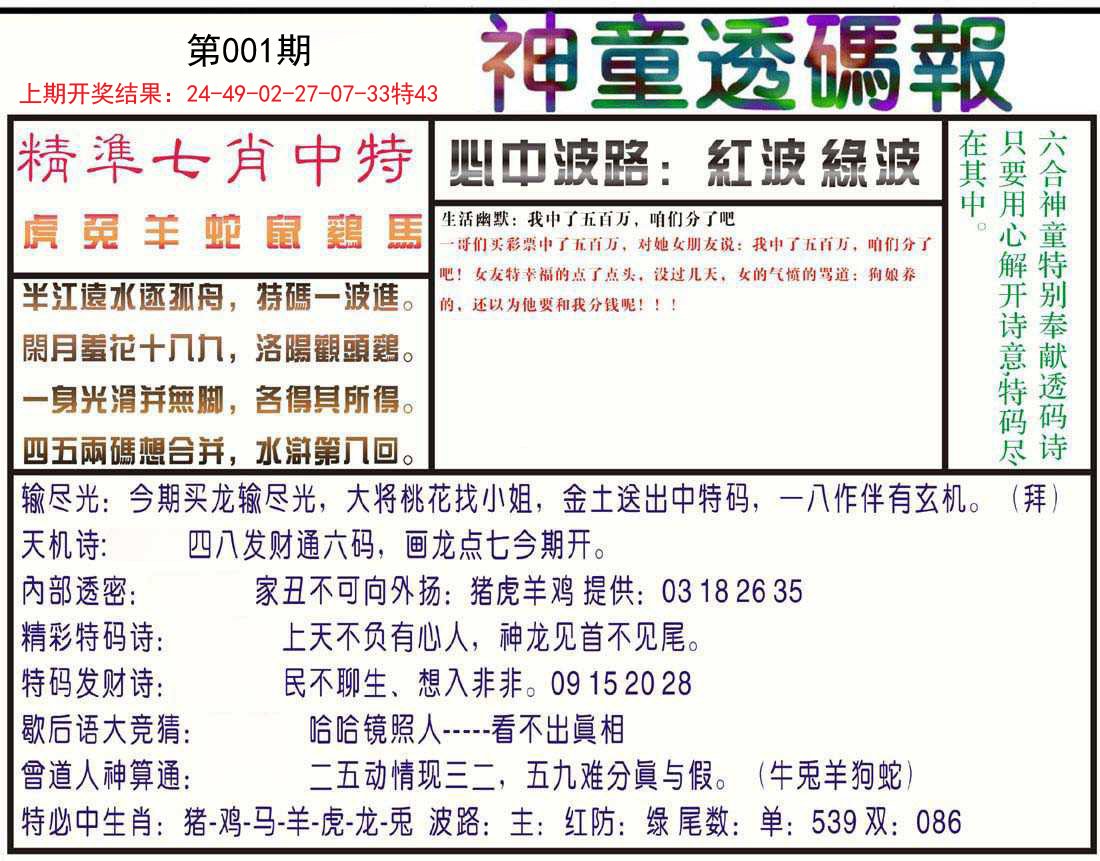 001期神童透码报[图]