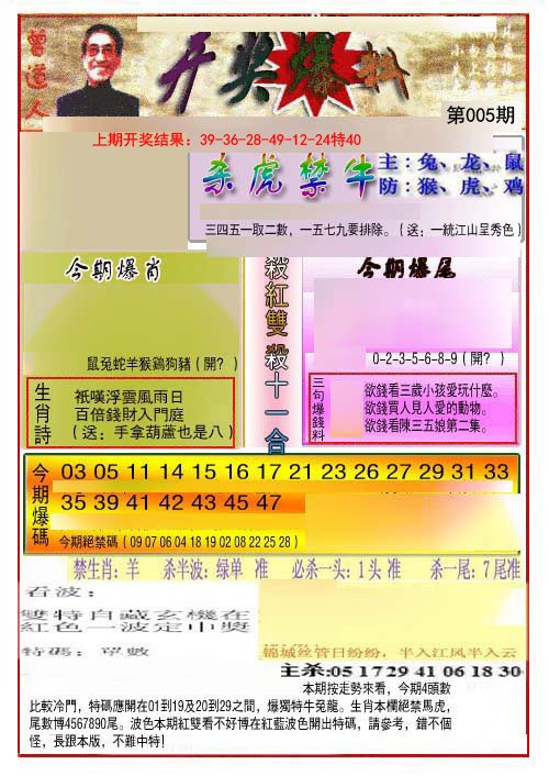 005期开奖爆料(新图推荐)[图]